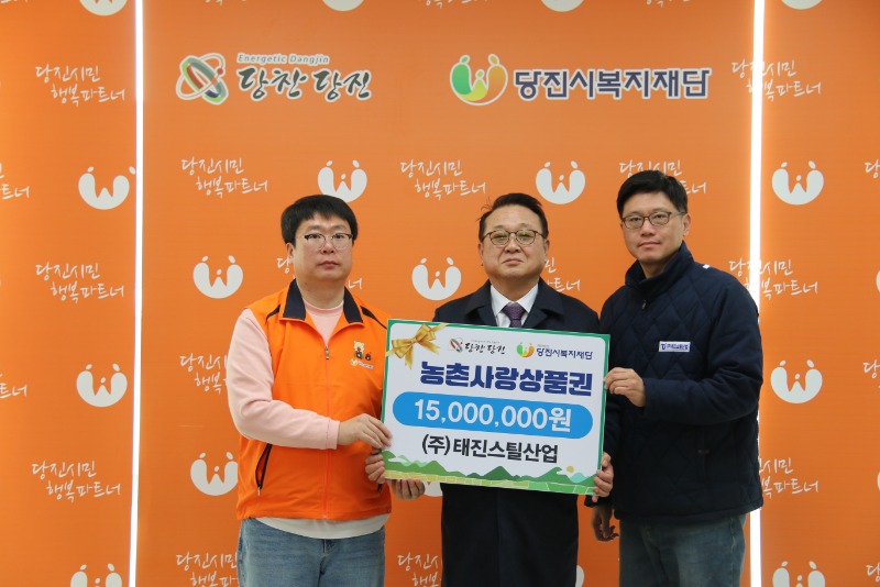 태진스틸산업 1500만원 상당 농촌사랑상품권 전달 페이지 정보 작성자 당진시복지재단 작성일25-01-15 09:24 조회수257 본문 태진스틸산업 1500만원 상당 농촌사랑상품권 전달 (주)태진스틸산업(대표 김종현)이 당진시복지재단을 방문해 저소득 취약계층을 위해 사용해달라며 농촌사랑상품권 1500만원을 전달했습니다. 태진스틸산업이 전달한 농촌사랑사품권은 당진시 관내 읍면동 추천을 통하여 저소득 취약계층 가구에 전달될 예정입니다. 목록 이전글 당진 호반써밋시그니처3차 아파트, 사랑의 라면트리 전달 25.01.15 다음글 물텀벙아구찜 당진점 지역아동센터 아동들에게 깜짝 선물 전달 25.01.15