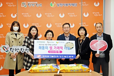 한국동서발전㈜ 당진발전본부(본부장 임승환)가 농업인의 날을 맞아 지난 9일 우리 재단을 방문해 관내 지역아동센터 12곳에 전달해 달라며 500만원 상당의 지역쌀과 가래떡을 전달 했다.