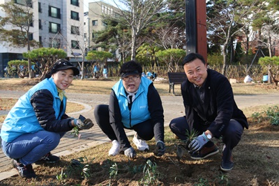 현대제철 해피프리즘 가족봉사단이 지난 19일 읍내동에 위치한 한마음공원에 꽃나무 총 2만1천 본을 심었다.
