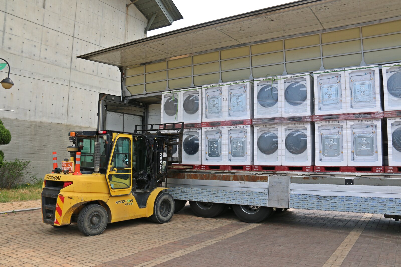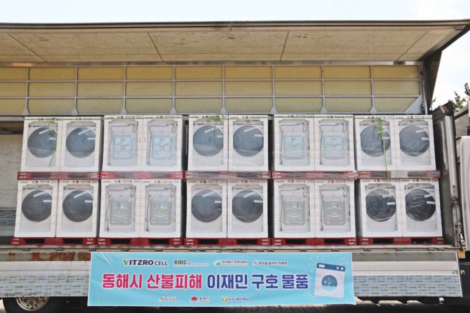 기탁 받은 산불피해 지역 이재민 돕기 성금(4천1백만원)으로 구매한 구호 물품 '드럼 세탁기 19kg 62대'를 전달했다.