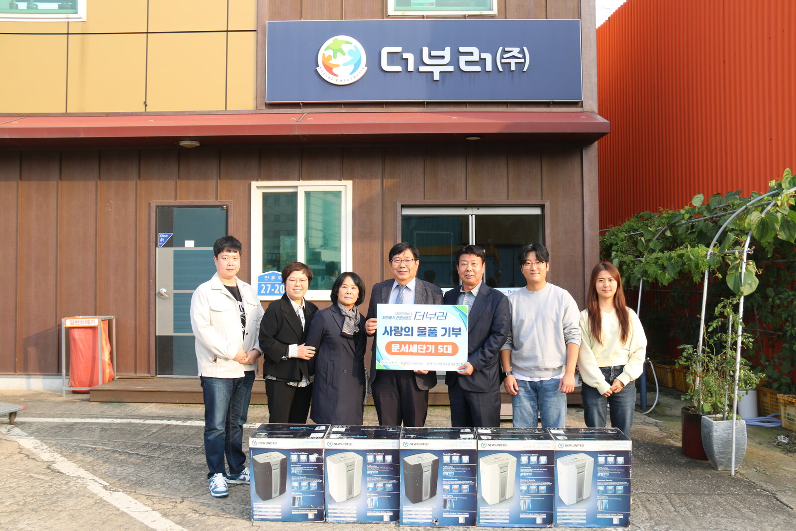 더부러(주)는 지난 10월 31일, 당진시복지재단에 문서세단기 5대를 전달하였다.