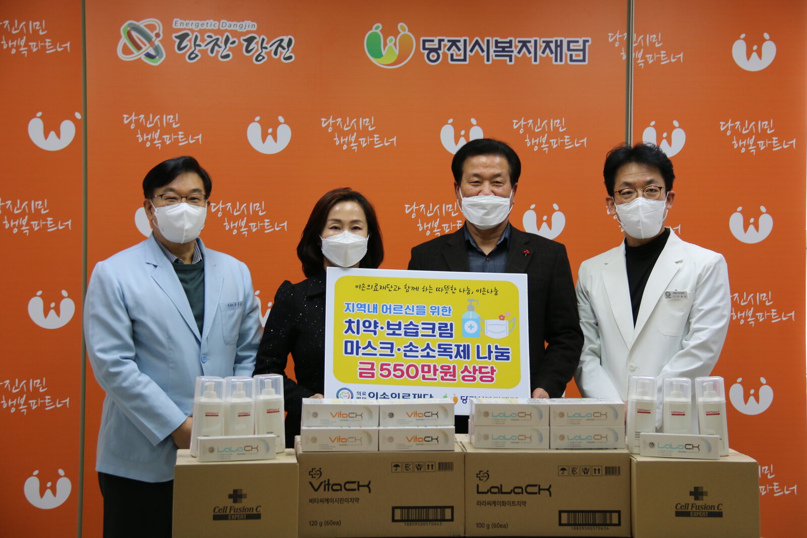 직접 제조/판매하는 치약과 보습크림, 마스크, 손소독제를 기부했다.