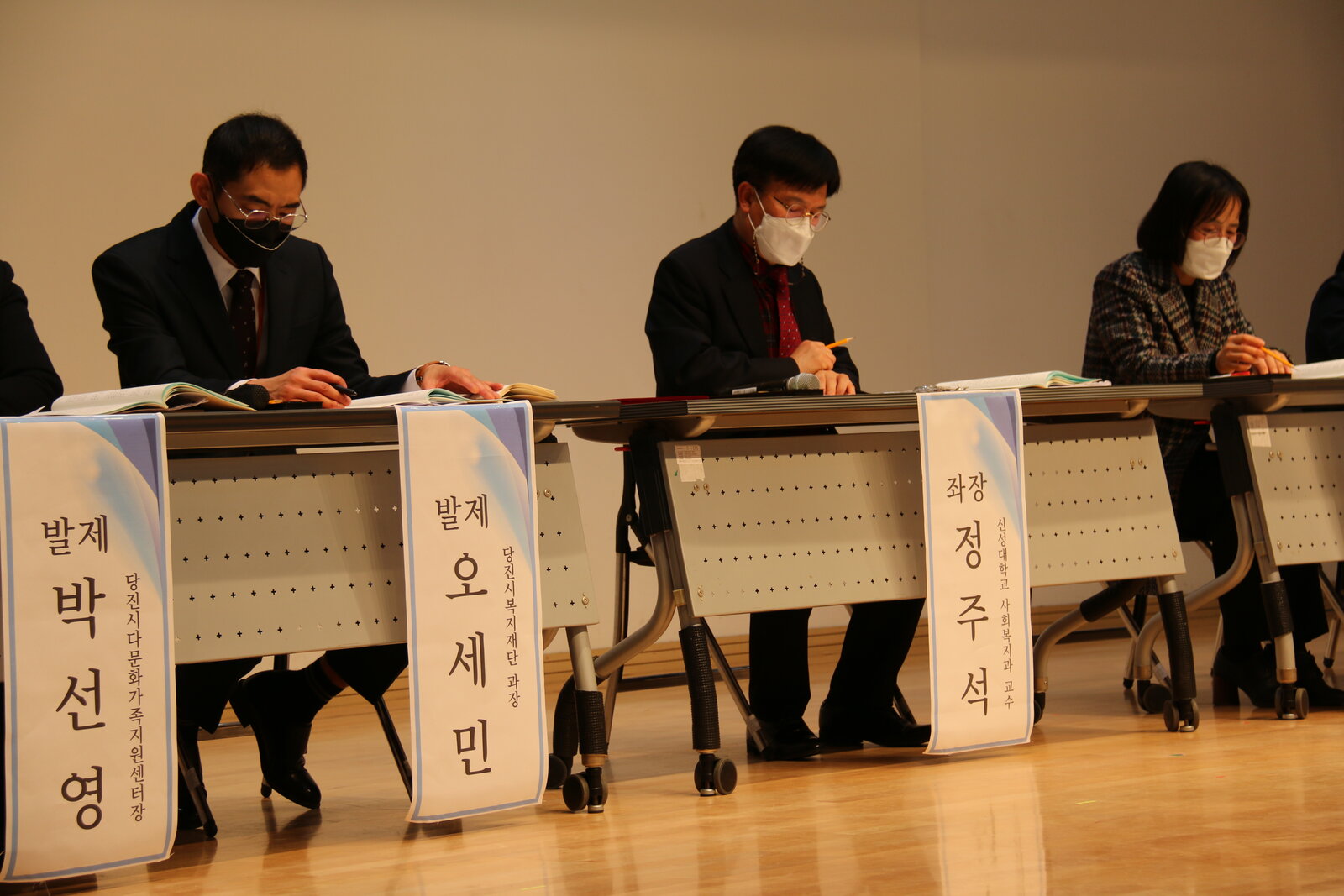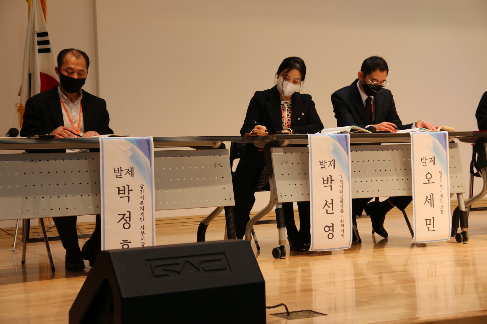 조삼혁 센터장(아산시건강가정다문화가족지원센터), 이선아 강사(당진시다문화가족지원센터 다문화 이해 강사), 홍승선 과장(당진시 여성가족과)이