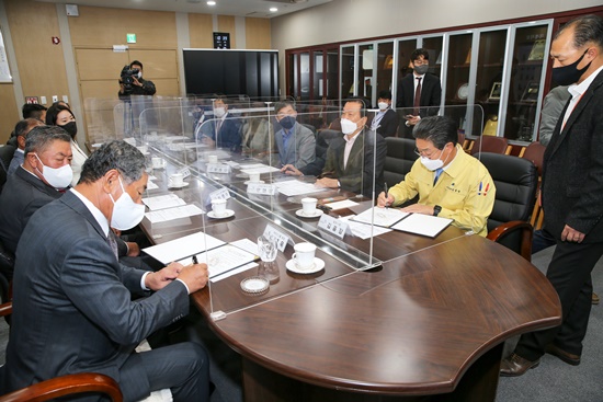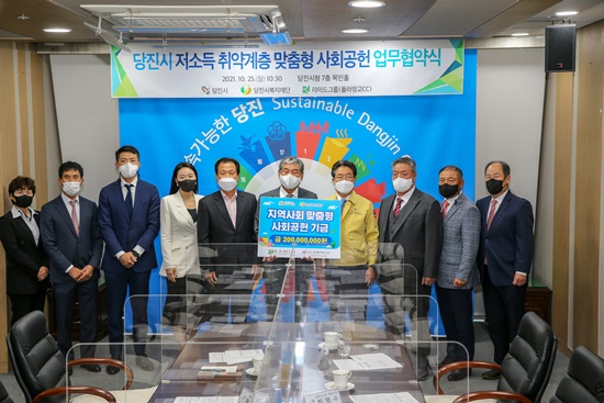 당진시청 목민홀에서 ‘저소득 취약계층을 위한 맞춤형 사회공헌 업무 협약’을 체결했다.