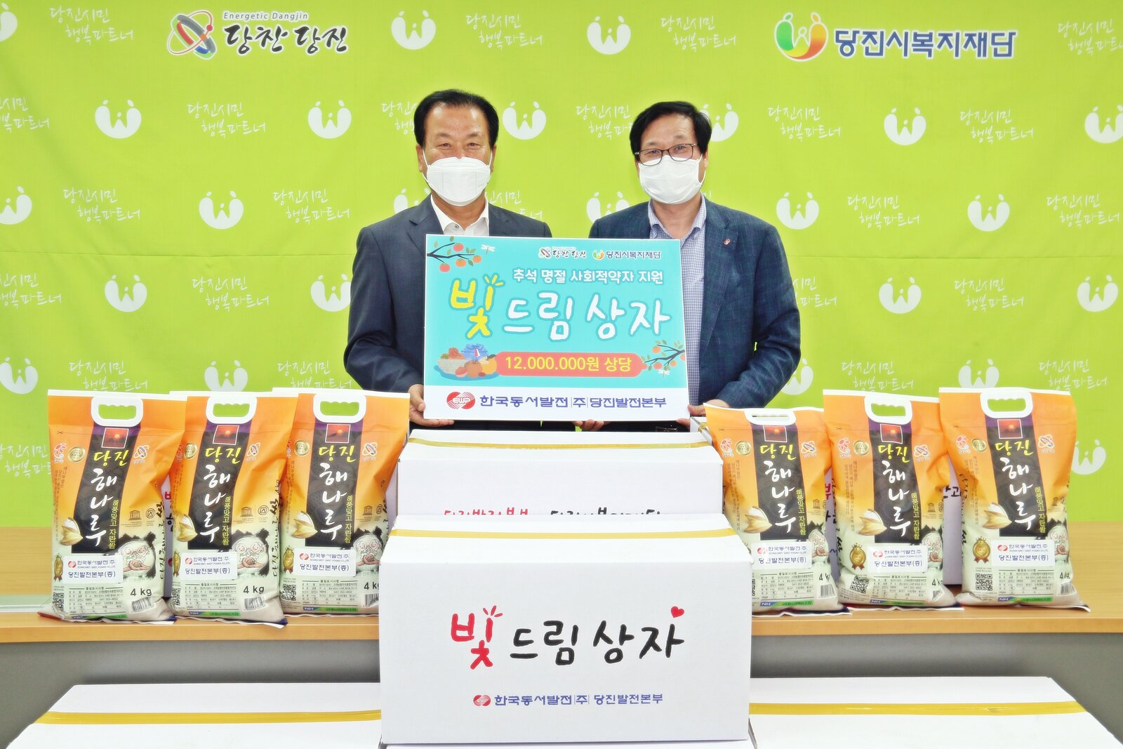 한국동서발전(주)당진발전본부(본부장 이창열, 이하 당진발전본부)가 당진시복지재단(이사장 왕현정, 이하 재단)에 1,200만원 상당의 빛드림상자를 전달했습니다.