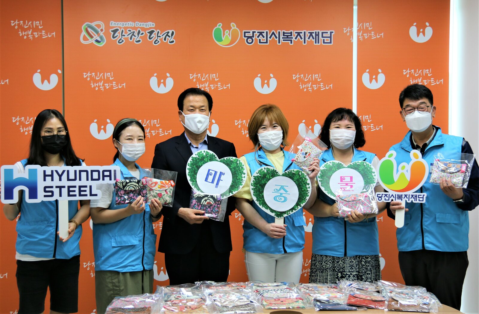 지난 8일, 현대제철 당진제철소 주부봉사단 마중물(단장 '최선민', 이하 마중물)이 당진시복지재단(이사장 '왕현정', 이하 재단)에