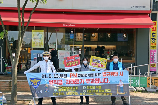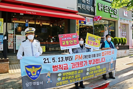 ‘횡단보도 LED 교통안전시설’을 설치 완료하고 지난 12일 당진공영버스터미널 앞에서 지역민과 함께 교통안전 캠페인을 진행했다.