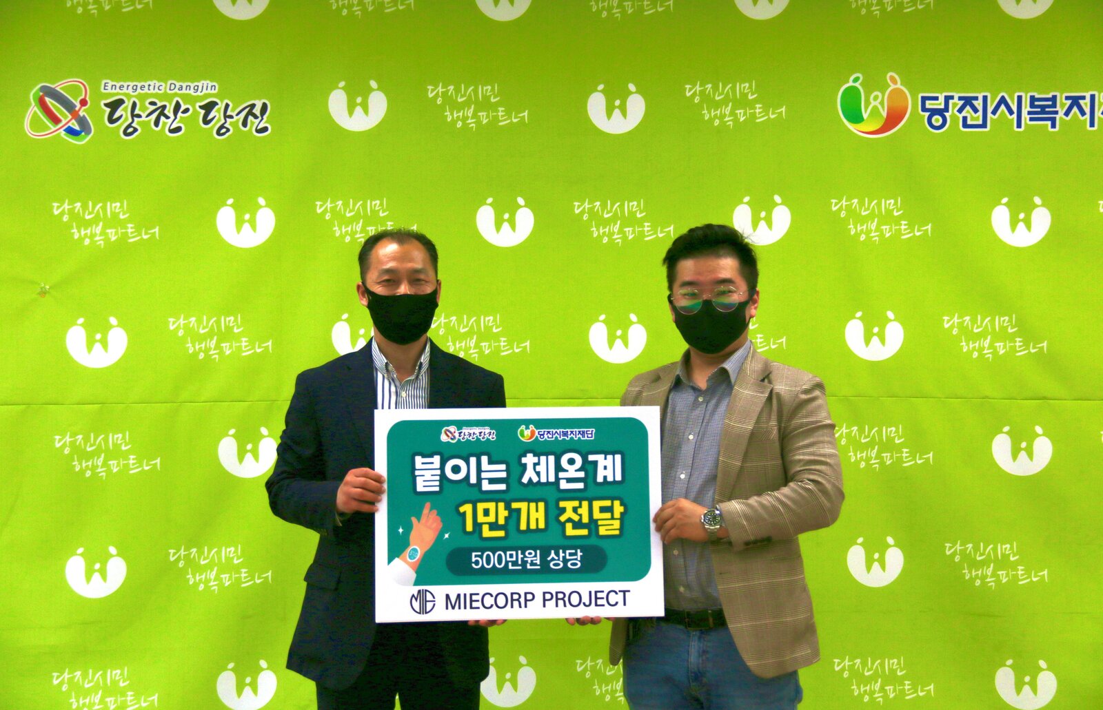 지난 17일, 미코프(대표 허선열)이 당진시복지재단(이사장 왕현정, 이하 재단)에 붙이는 체온계 1만개(500만원 상당)을 전달했습니다.