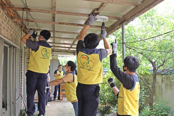 한전KPS의 사회공헌은‘새 빛 Dream'을 주제로 펼치는 전기분야 전문봉사로 11개 팀 30여명의 직원들이 5개조로 나뉘어 취약가정 24곳의 노후화된 전기시설물을 점검하고 보수(교체)하는 활동으로 내달까지 진행될 예정이다.