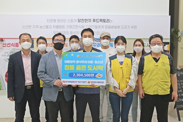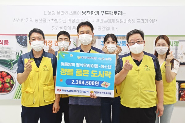 당진을 대표하는 발전 설(정)비전문공기업인 한전KPS(주)당진사업처(처장 김백기, 이하‘한전KPS')가 6일(목) 당진전통시장 어시장 2층에서 여름방학을 맞아 결식이 우려되는 아동청소년을 위해 사용해 달라며 후원금 2,304,500원을 시 출연기관인 당진시복지재단(이사장 왕현정)에 기탁했다.