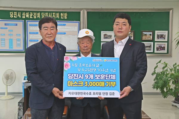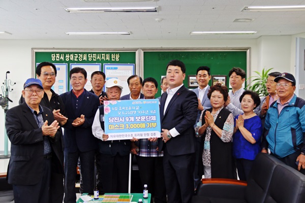 당진시 9개 보훈단체 국가유공자에게 전달해 달라며 150만원 상당의 마스크 3천매를 시 출연기관인 당진시복지재단에 기탁했다.