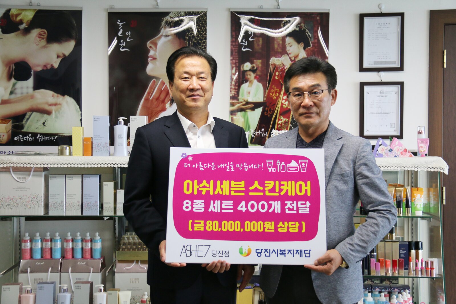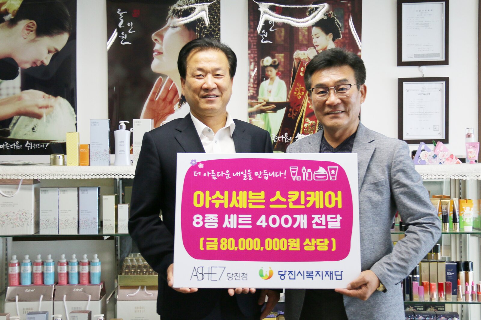 당진시복지재단에 화장품 기초 8종세트 400개를 기탁하였습니다.