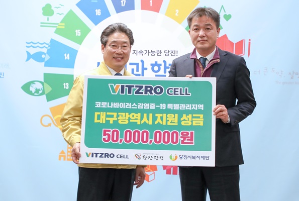 당진을 대표하는 기업이자 일차전지 분야 국내 최고 기업으로 손꼽히는 (주)비츠로셀(대표 장승국)이 5일 당진시청을 방문해 코로나바이러스감염증-19로 인해 특별관리구역으로 지정된 대구광역시에 전달해 달라며 5천만원을 기탁했다.