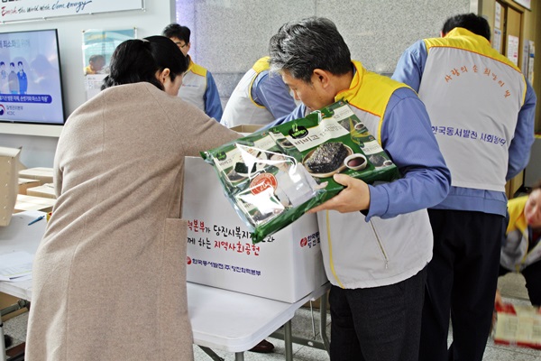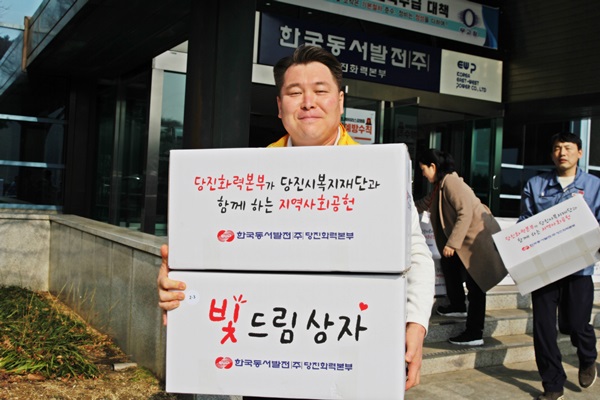 금일(14일, 금) 당진화력본부에서 지역 내 저소득 취약가정을 대상으로 식료품, 생필품, 신학기 학용품을 지원하는 지역사회공헌 활동인 '빛 드림상자' 를