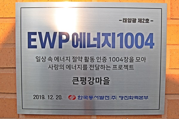 당진시 합덕읍에 소재한 노인장기요양시설인 큰평강마을에 EWP에너지1004 2호 태양광(5kw급 지붕형) 준공식을 개최했다.