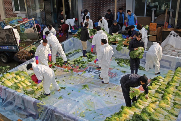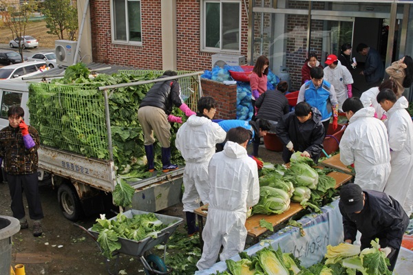 당진시장애인후원회(회장 심상복) 함께 올해도 어김 없이 우리 지역에 거주하고 있는 장애인들에게 전달할 김장김치를 만들었다.