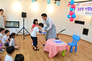 김홍장 시장은 무지개 물고기 동화를 실감나게 구연하고 아동들과 대화시간을 갖으며 시간을 보냈다.