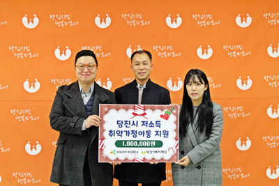 당진지역에 거주하는 저소득 아동가정에 전달해 달라며 후원금 1백만 원을 기탁했다.