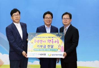 (주)네비엔(대표이사 박영동)은 9월 추석명절을 맞아 지역 내 저소득층을 위한 행복나눔 상자 구입(전달)과 충남지체장앤인협회 당진시지회의 기능보강에 사용해 달라며 본 재단에 후원금 200만원을 기탁했습니다.