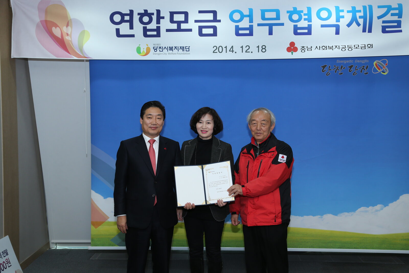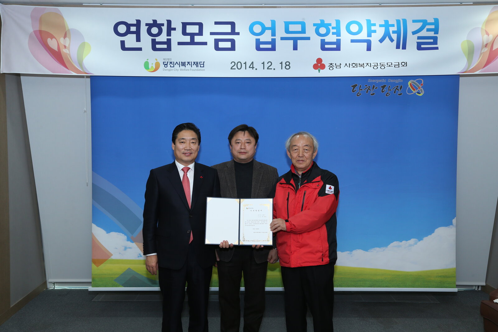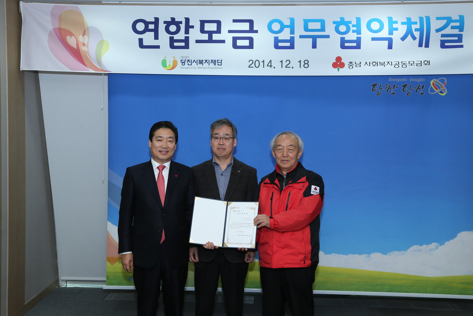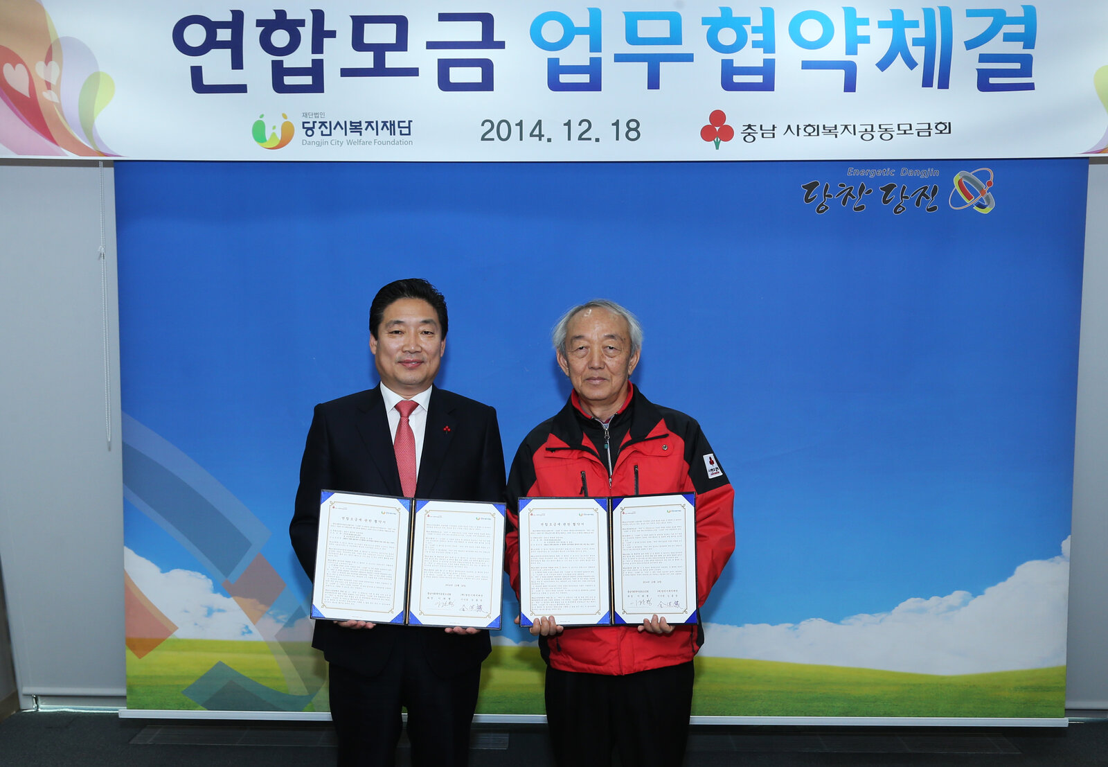당진시 어려운 이웃을 위해 당진시복지재단(이사장 김홍장)과 충남사회복지공동모금회(회장 이관형)가 지난 19일 오후어려운 이웃을 위해 당진시복지재단(이사장 김홍장)과 충남사회복지공동모금회(회장 이관형)가 지난 19일 당진시청 시장실에서 김홍장 당진시복지재단 이사장 및 당진시장, 이관형 충남사회복지공동모금회장 등 10여 명이 참석한 가운데 ‘당진시 저소득지원 복지재원 마련을 위한 연합모금 업무협약’을 체결했다.