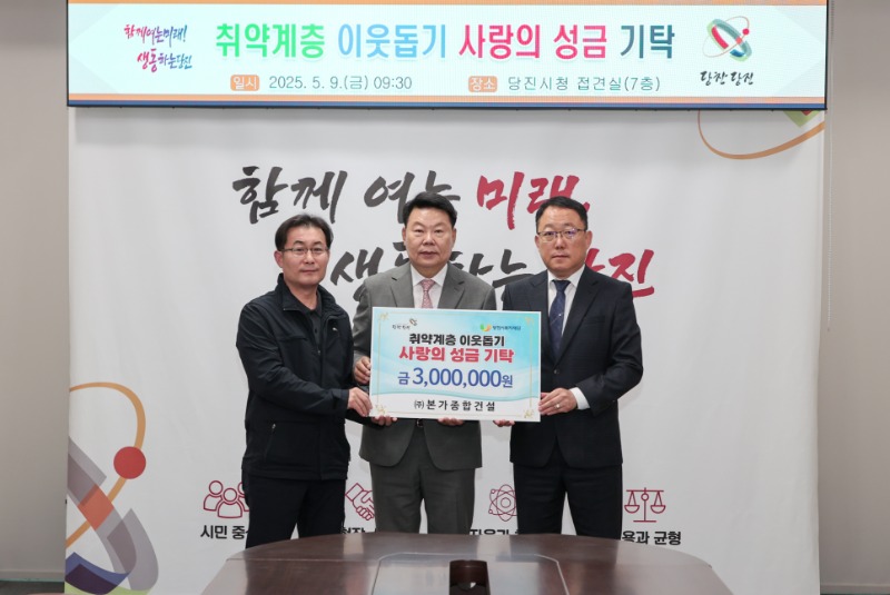 (주)본가종합건설 취약계층 이웃돕기 사랑의 성금 300만원 기탁 페이지 정보 작성자 당진시복지재단 작성일25-06-09 13:40 조회수57 본문 (주)본가종합건설에서 5월 9일, 취약계층을 돕기위해 사랑의성금 300만원을 기탁했습니다. 목록 이전글 우림에프엔씨 취약계층 이웃돕기 사랑의 성금 1천만원 기탁 25.06.09 다음글 월참좋은모임회 취약계층 이웃돕기 사랑의 성금 기탁 25.06.09