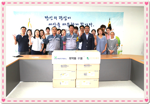 주식회사 휴스틸 당진공장 임직원들은 26일 당진시 복지재단을 방문해 월급 ‘끝전 모으기’를 통해 마련한 돈으로 구입한 철분제 320상자(1000만 원 상당)를 기부해 미담이 되고 있다.