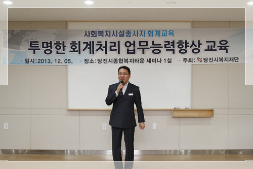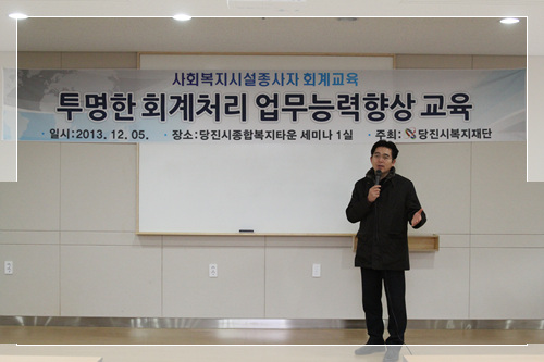 당진시복지재단은 지난 5일 당진시종합복지타운에서 31개 기관 사회복지시설종사자 50명을 대상으로 회계교육을 실시하였다.