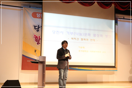 세미나의 주제발표는 이용재 교수(호서대 사회복지과)가 “당진시 기부(나눔)문화 활성화 방안(섹터간 협력과 연대)” 이라는 주제로 기부(나눔)의 필요성, 다양한 사례, 당진시 복지자원과 문제점 및 활성화 방안에 대해 설명 하였다.