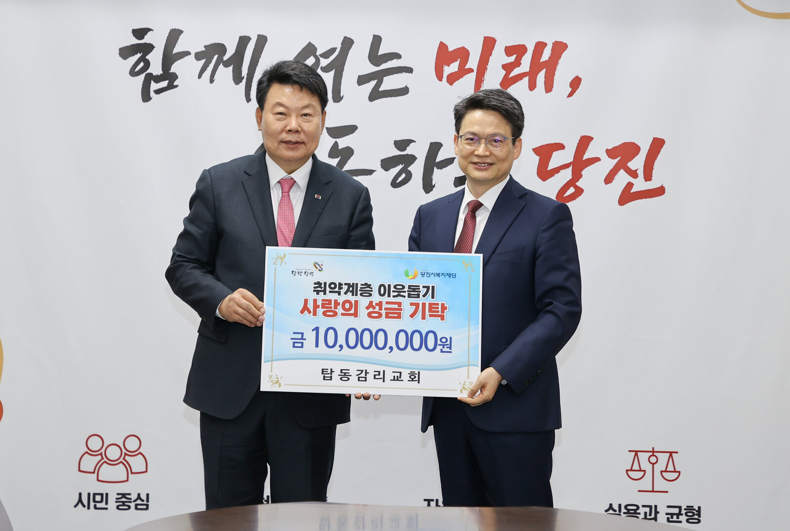 해당 기부금은 교회 모토인 "사람을 살리는 교회" 에 맞워 당진시 저소득 취약계층