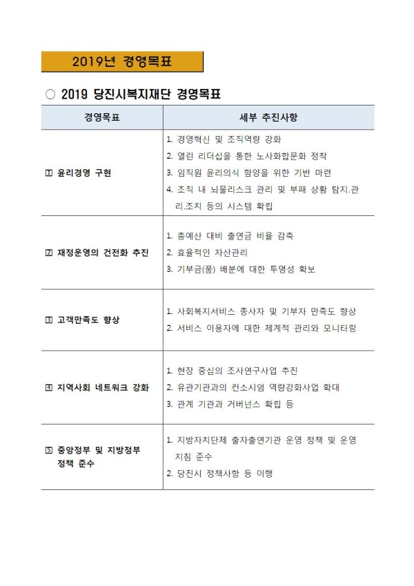 2019년 경영목표