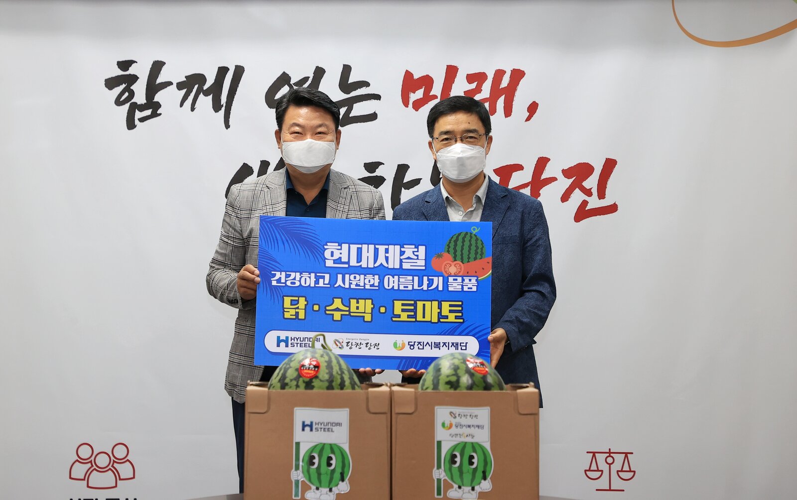 현대제철 당진제철소가 '건강하고 시원한 여름나기' 계절음식 전달식을 열었다.