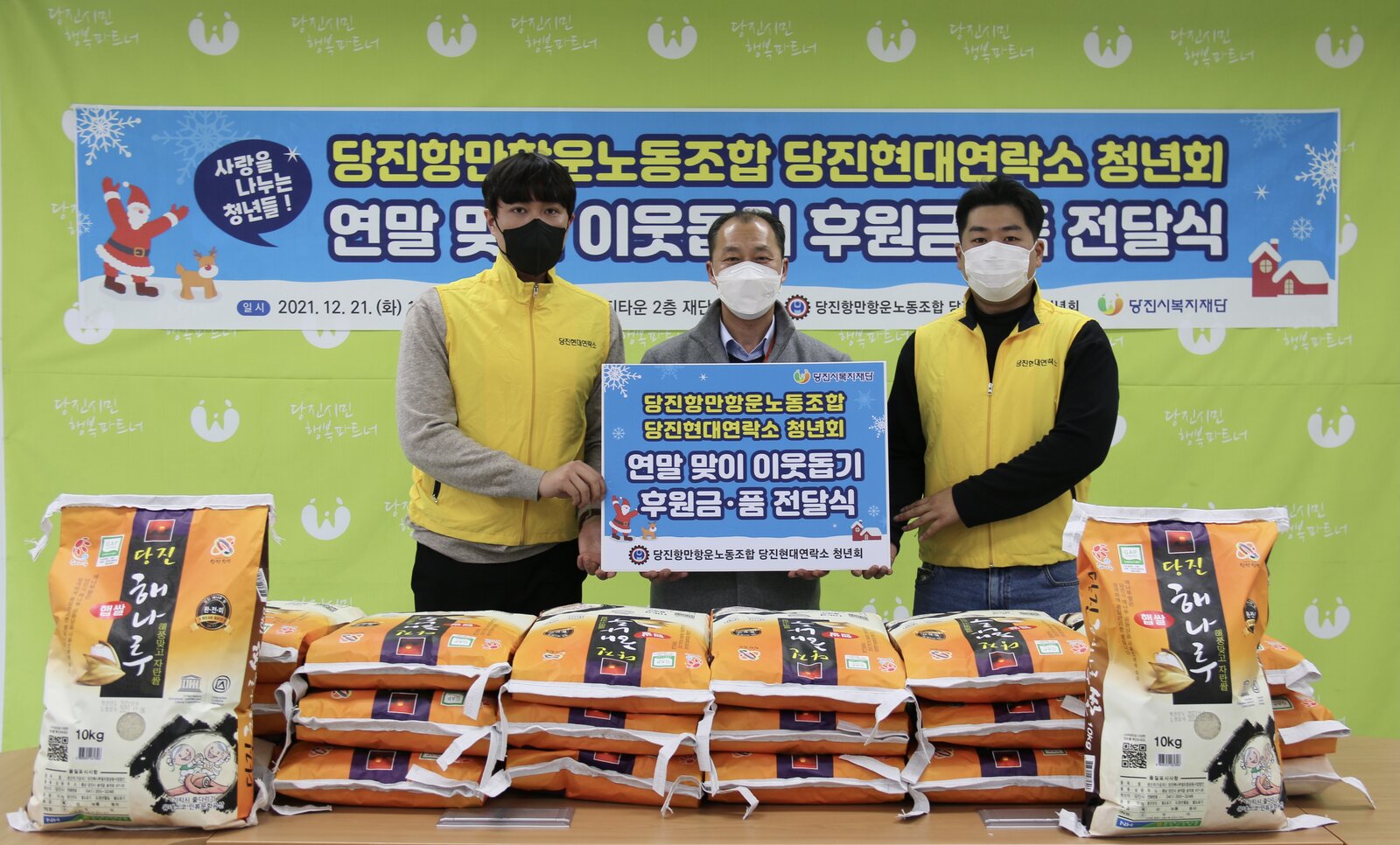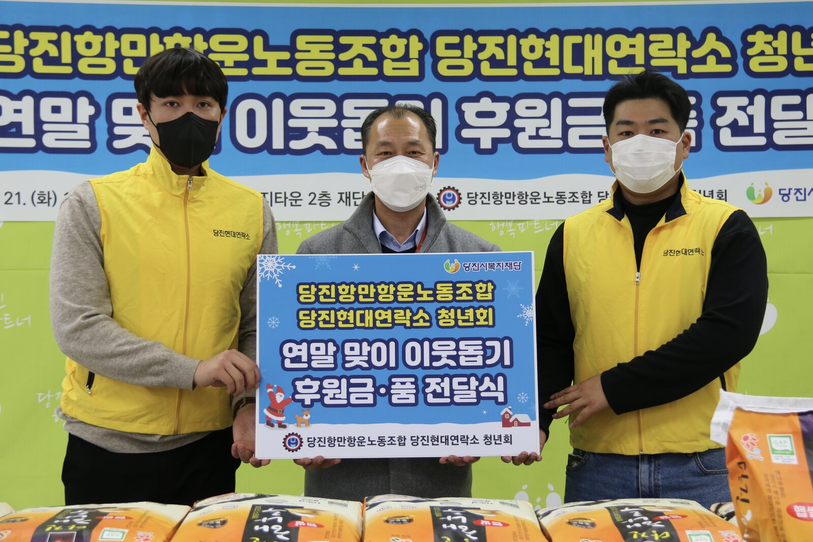 청년회는 당진항만항운노조 당진현대연락소 소속으로 만38세 이하 청년들로 구성된 단체로 매년 함께 뜻을 모아 연말연시 나눔 활동을 펼치고 있다.