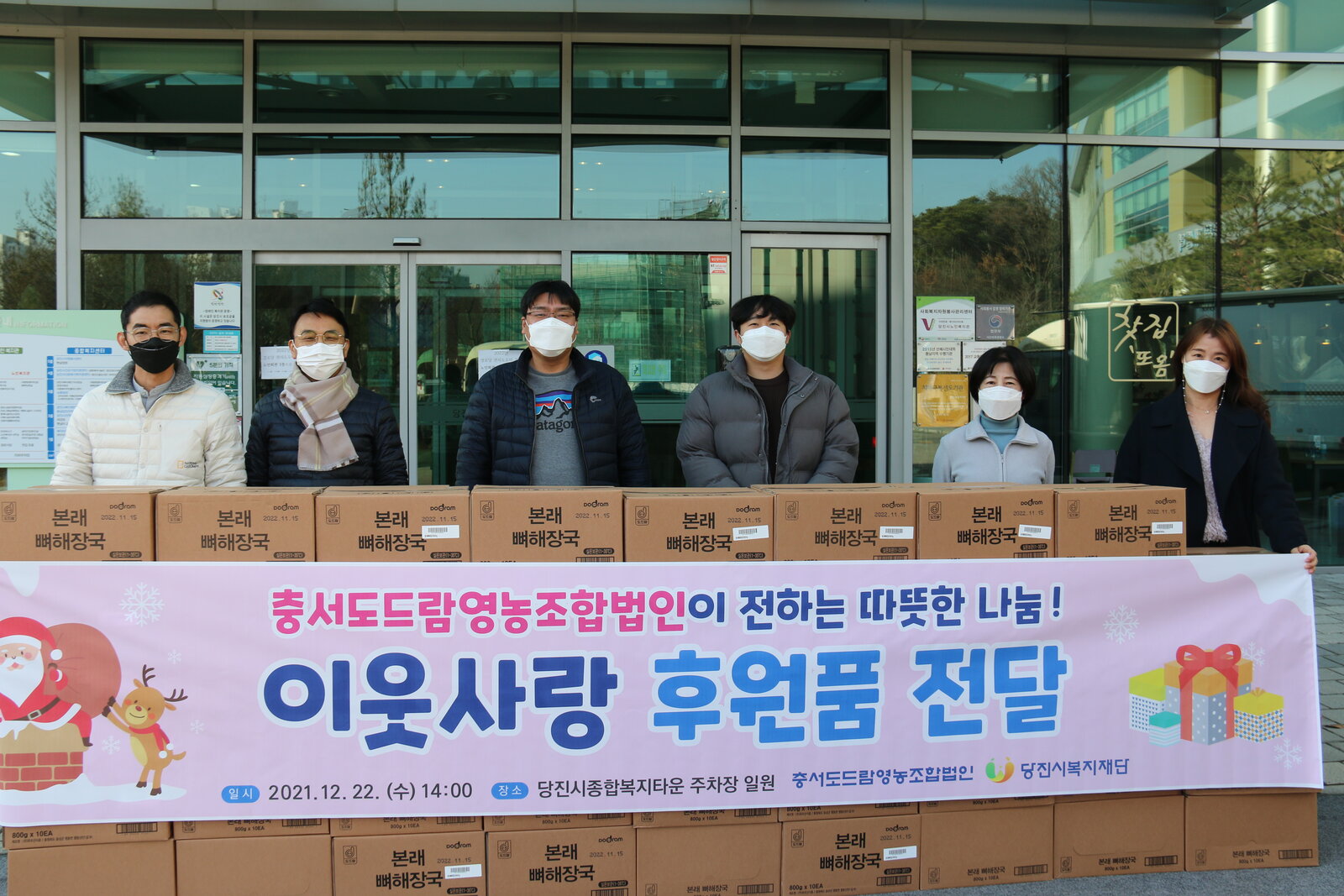 충서도드람영농조합법인에서 당진시복지재단에 뼈해장국 44상자(10개입)을 기탁했습니다.