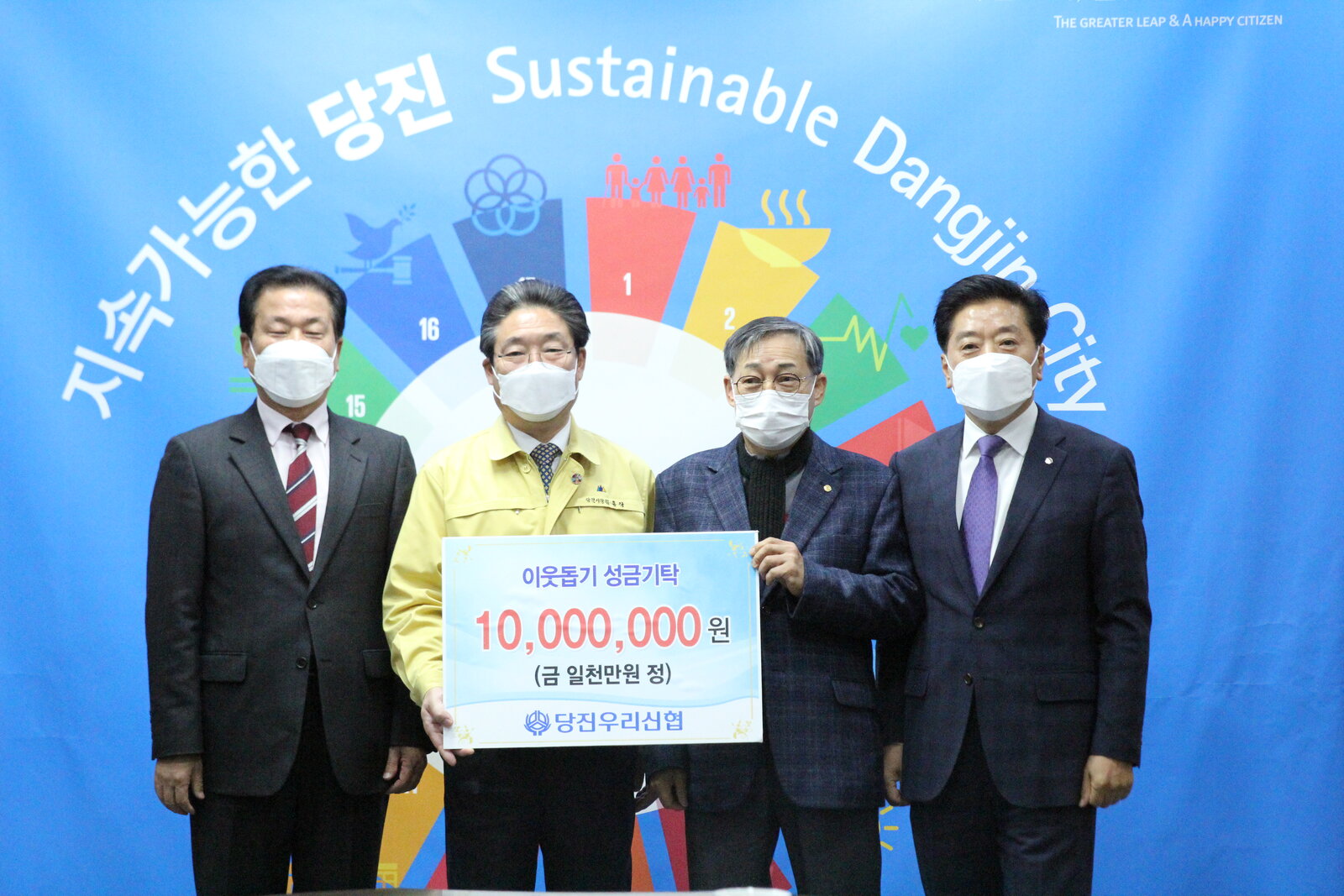 21년 11월 30일 당진우리신협에서 관내 저소득 취약계층 지원을 위한 이웃돕기 성금 1천만원을 기탁했습니다.