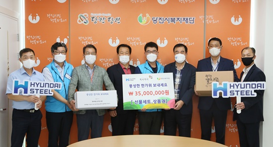 현대제철 당진제철소는 지난 14일 당진시복지재단을 방문하여 3천5백만 원 상당의 추석 명절 이웃사랑 나눔 활동