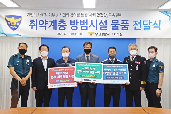 참여기업은 각 500만 원씩 총 1,500만 원 상당의 방범시설 물품을 당진시 복지재단에 지정 기부하는 형식으로 진행됐다.