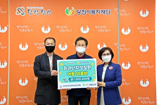 기탁된 후원금은 (사)한국부인회 당진지회와 샘물교회의 회원들과 성도들이 마음을 담아 모은 성금으로