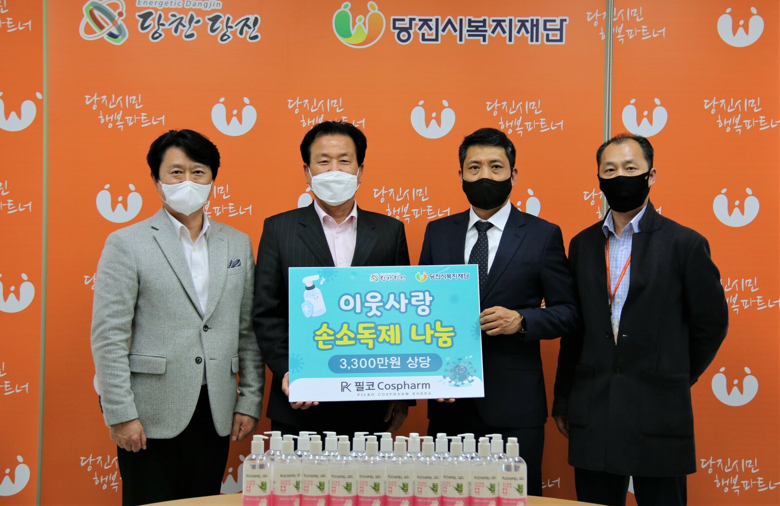지난 29일, 제이앤제약(주)(사장 '정훈철')이 당진시복지재단(이사장 '왕현정', 이하 재단)에 이웃사랑 손소독제 12,532개를 전달하며