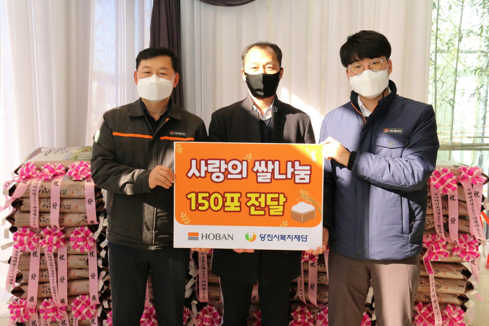 신축공사 기념 사랑의 백미 150포를 당진시복지재단(이사장 '왕현정' 이하 재단)에 기탁하며 지역사회 나눔 문화 확산에 동참하였습니다.