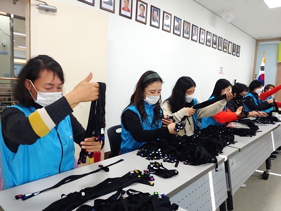 당진전통시장 내 어시장 2층 회의실에서 마스크 2만 장과 수제스트랩을 기탁했다.