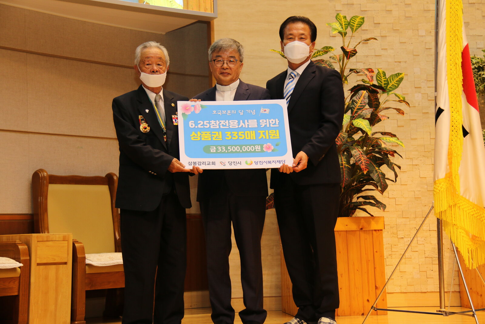 전달하였습니다. 해당 상품권은 당진시에 거주하는 6.25 참전용사 335명에게