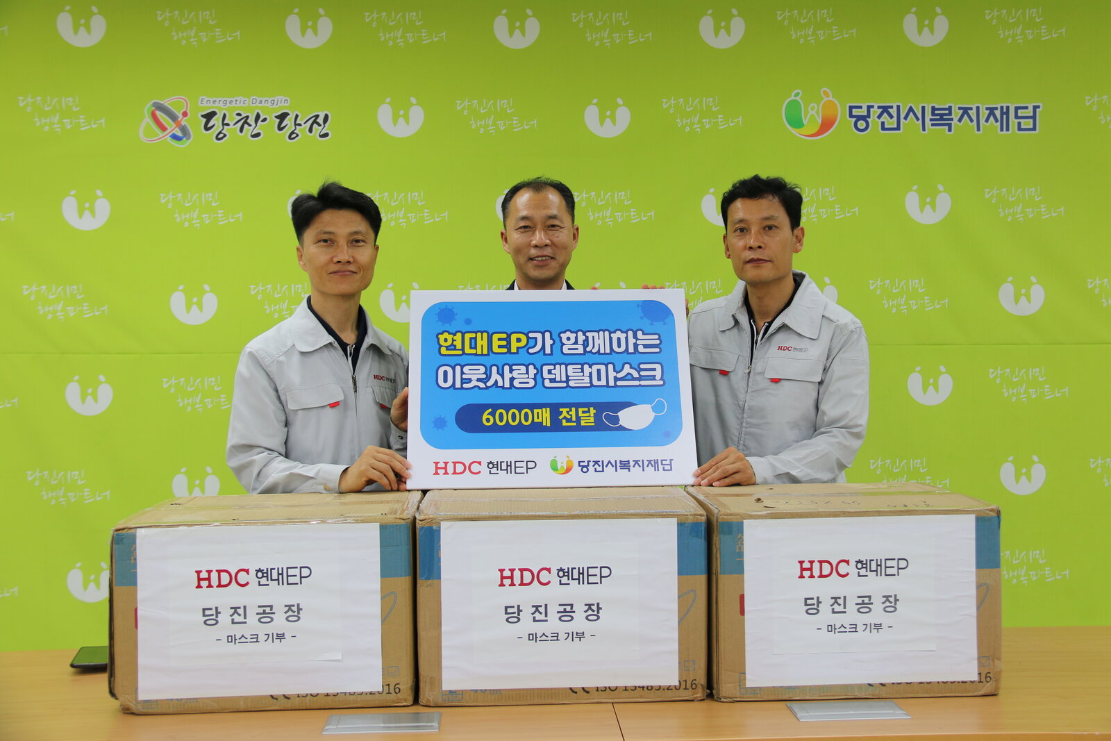 당진시복지재단으로 덴탈마스크 6천매를 전달하였습니다. 현대ep는