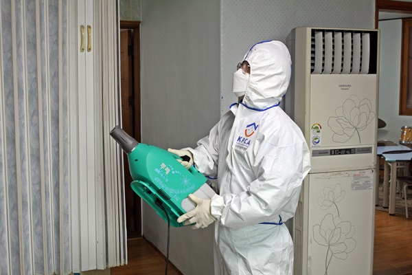코로나19 지역사회 확산 방지와 차단을 위한 소독 및 방역활동을 실시하며 올바른 소독방법을 안내하고 살균 소독제를 전달했다.