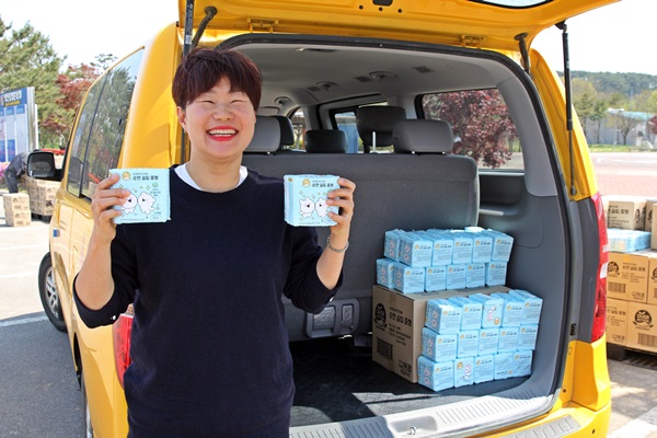 지난 28일, 당진시청을 방문해 당진시 소외계층 여성들에게 전달해 달라며 보건위생용품(생리대)