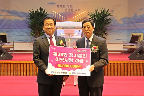 39회 정기총회를 맞아 우리 재단에 이웃사랑 성금 1천만원을 전달했다.