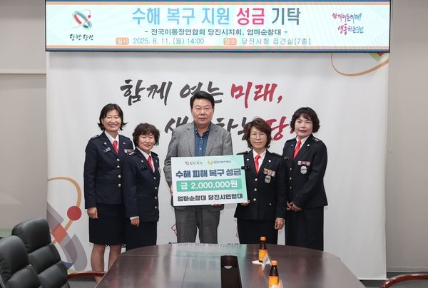 엄마순찰대 당진시연합대(대장 정복순)는 지난 8월 11일, 수해 복구를 위한 성금 200만원을 기탁했다.