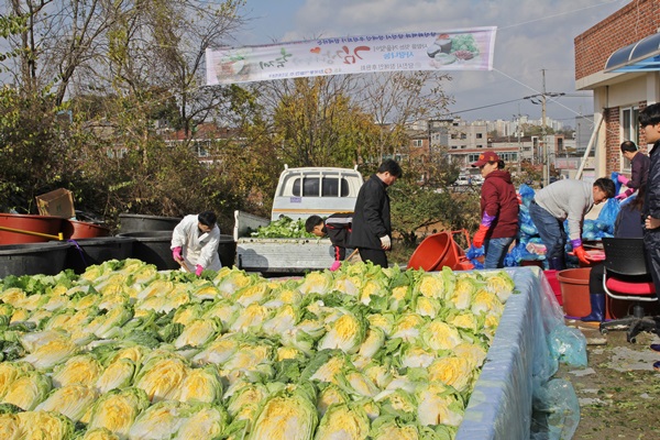 당진시장애인후원회(회장 심상복) 함께 올해도 어김 없이 우리 지역에 거주하고 있는 장애인들에게 전달할 김장김치를 만들었다.