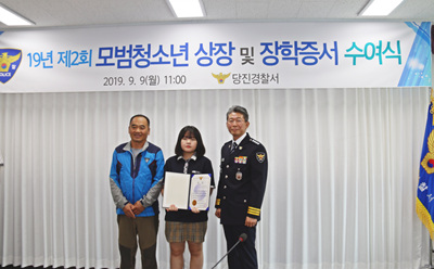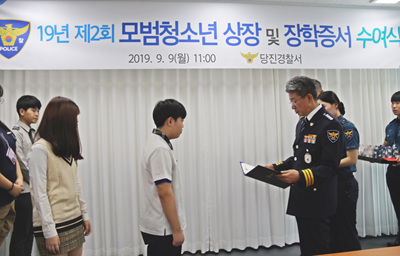 당진경찰서(여성청소년과-청소년문화발전위원회)가 2019년 제2회 모범청소년 장학금 전달식을