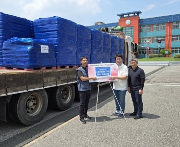 전국청년새마을연합회와 시온애드 수해(폭우)피해 이재민지원 기부품 전달