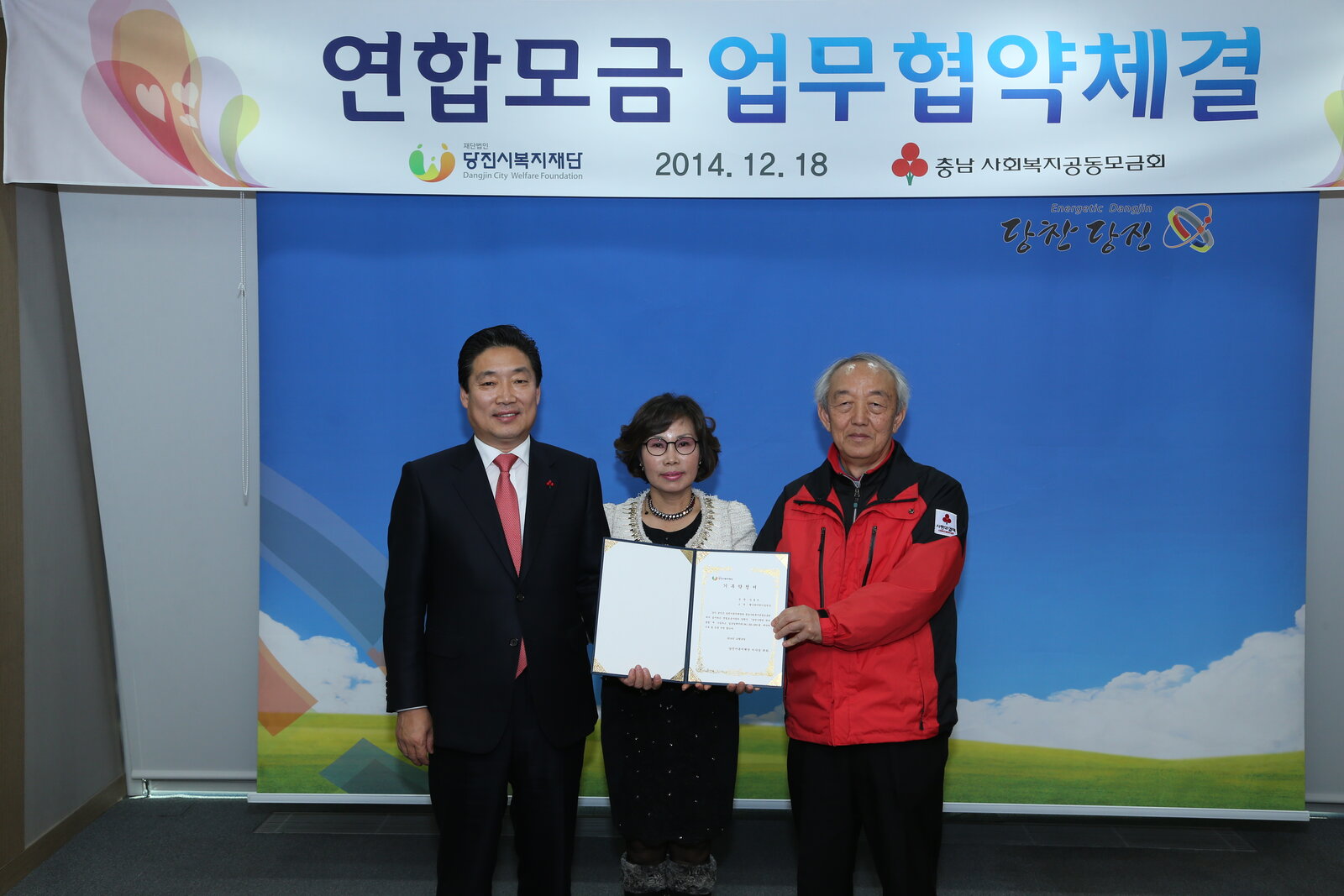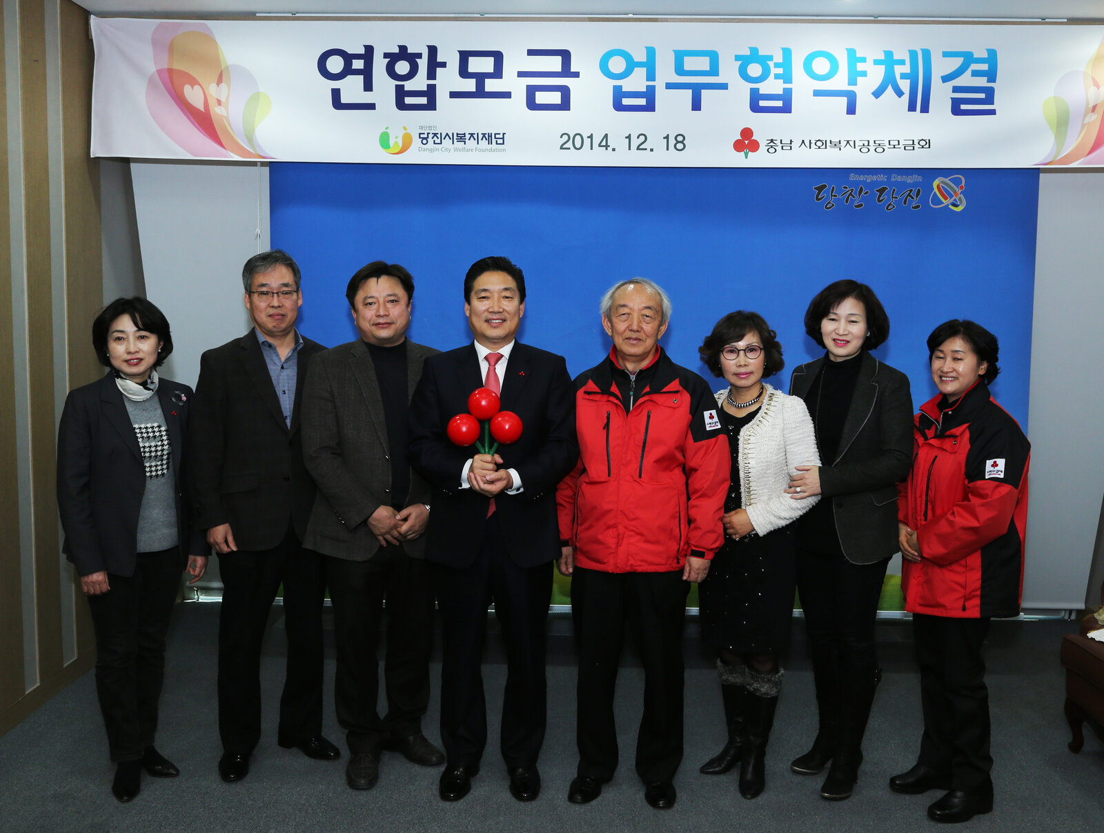 당진시 어려운 이웃을 위해 당진시복지재단(이사장 김홍장)과 충남사회복지공동모금회(회장 이관형)가 지난 19일 오후어려운 이웃을 위해 당진시복지재단(이사장 김홍장)과 충남사회복지공동모금회(회장 이관형)가 지난 19일 당진시청 시장실에서 김홍장 당진시복지재단 이사장 및 당진시장, 이관형 충남사회복지공동모금회장 등 10여 명이 참석한 가운데 ‘당진시 저소득지원 복지재원 마련을 위한 연합모금 업무협약’을 체결했다.